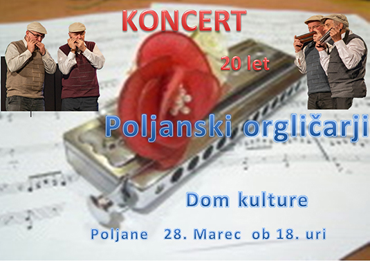 Vabimo vas, da se nam pridružite v soboto, 28. marca 2026, ob 18. uri v Hiši kulture v Poljanah, da se ob zvokih orglic
