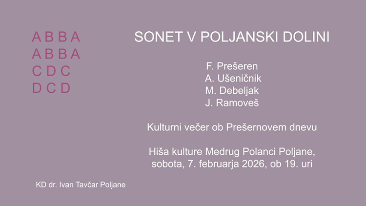 ter Milan Debeljak bodo poleg nekaj sonetov Franceta Prešerna interpretirali tudi sonete treh ustvarjalcev, ki izhajajo iz Poljanske doline: