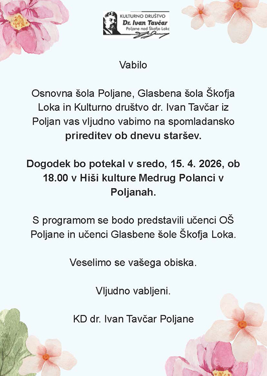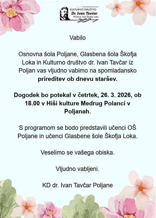 KD dr. Ivan Tavčar Poljane nad Šk. Loko organizira tradicionalni dogodek na predvečer kulturnega praznika.