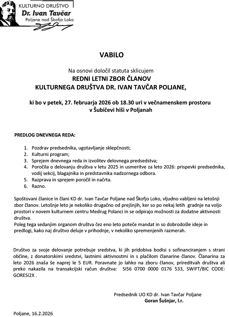 Predvečer slovenskega kulturnega praznika je tudi čas za letni občni zbor
